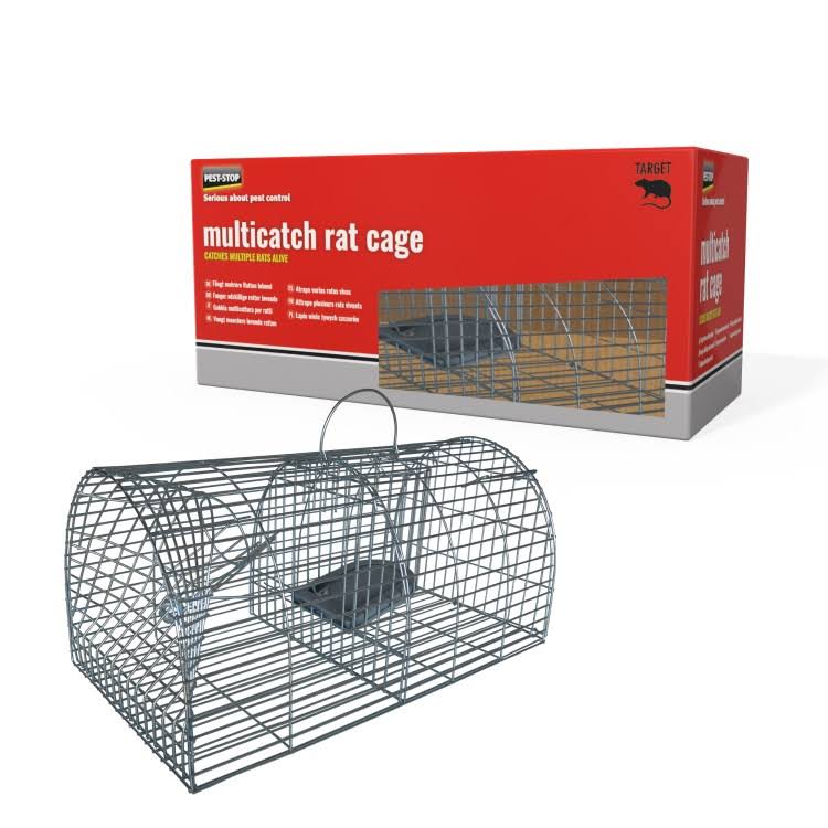 • Jaula diseñada en forma de embudo para capturar varias ratas